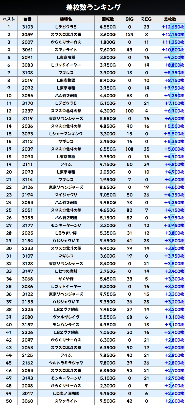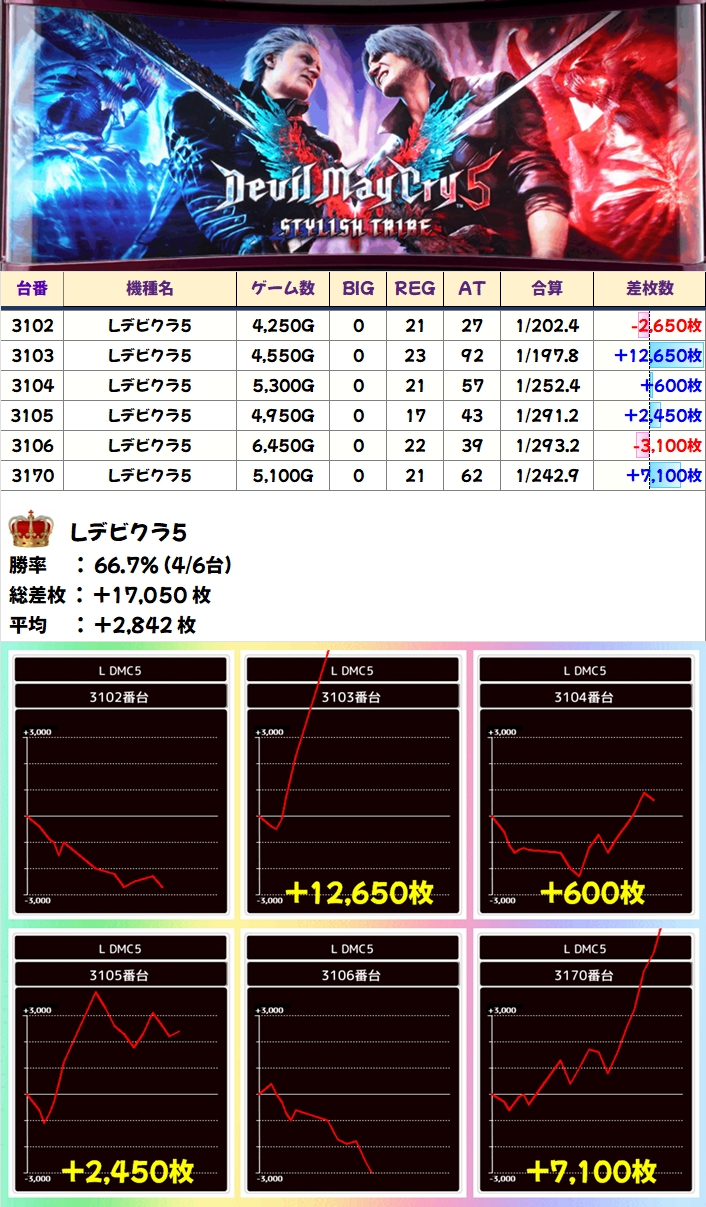 【1/2系濃厚】Lデビクラ5(4/6台+)→平均+2,842枚