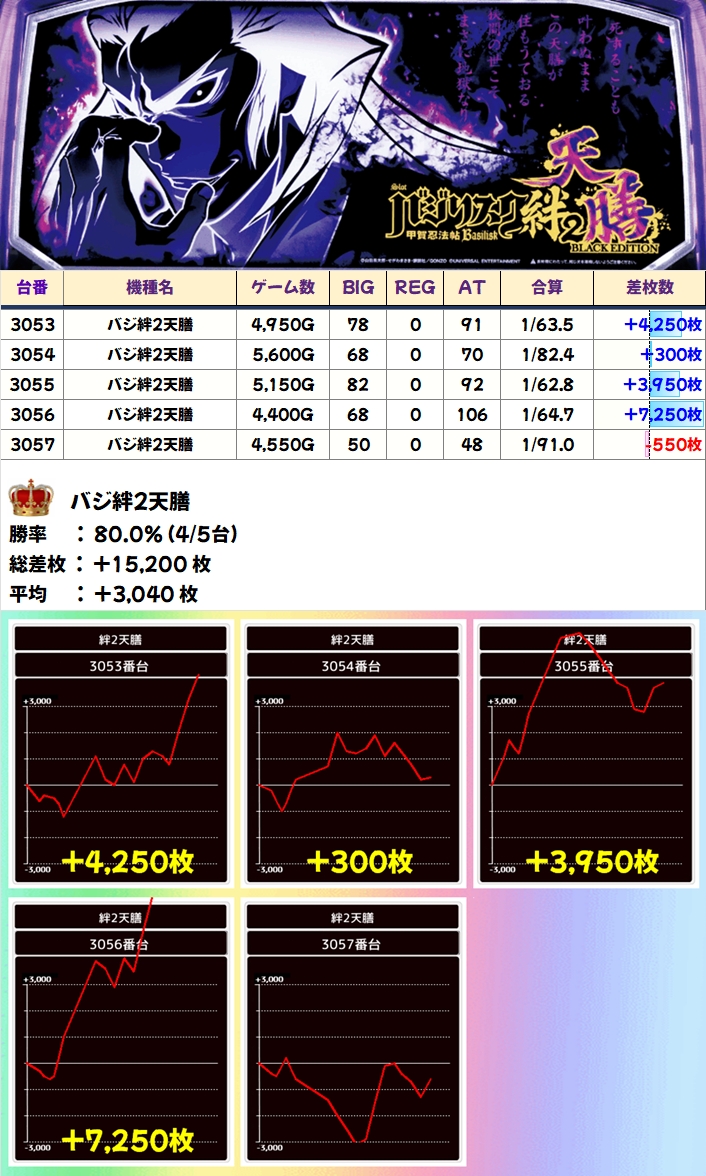 【1/2系濃厚】バジ絆2天膳(4/5台+)→平均+3,040枚