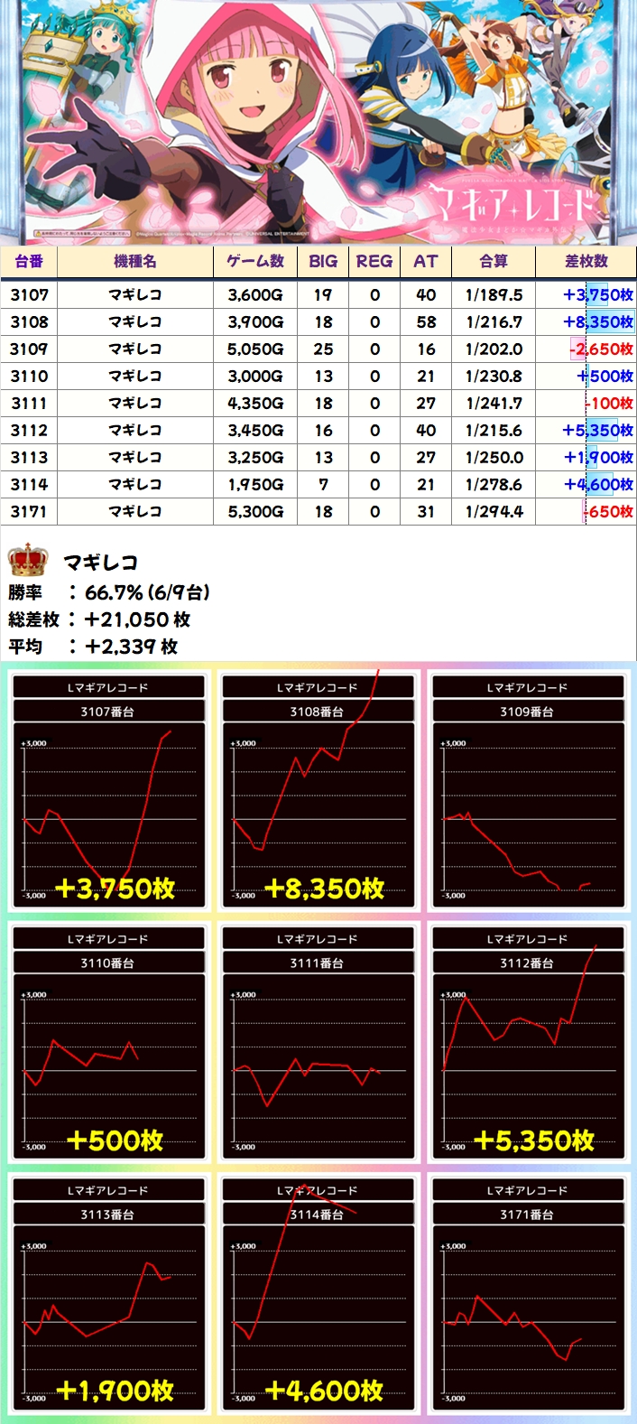 【1/2系濃厚】マギレコ(6/9台+)→平均+2,339枚