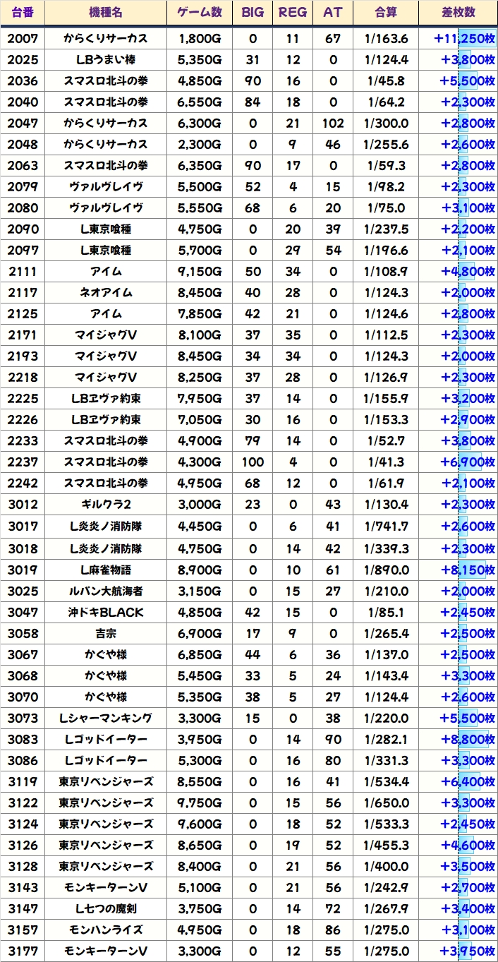 また、単品での投入も多いため、至る箇所にチャンスが散りばめられている日となっています。