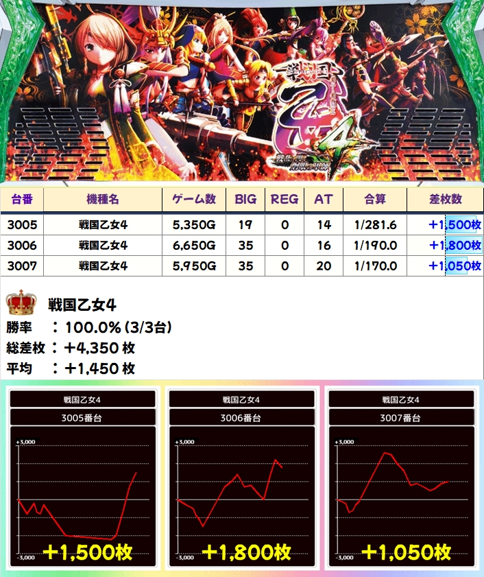 【高配分】戦国乙女4(3/3台+)→平均+1,450枚