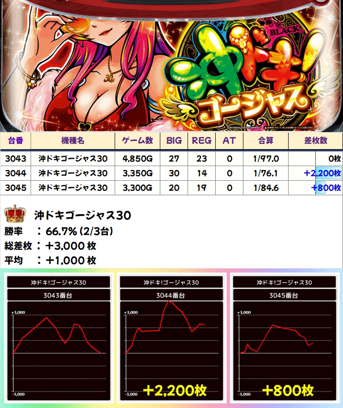 【高配分】沖ドキゴージャス30(2/3台+)→平均+1,000枚