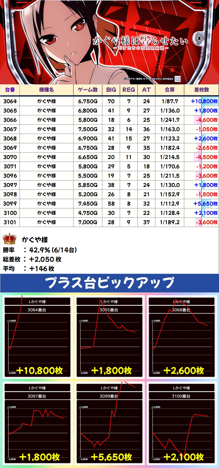 【1/3系濃厚】かぐや様(6/14台+)→平均+146枚
