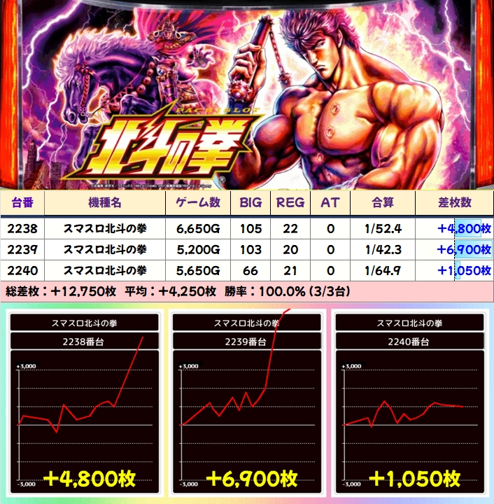 この日はポスター機種の「スマスロ北斗」が高配分になっており、その他にも人気機種の「東京喰種」が1/3系濃厚の結果に!