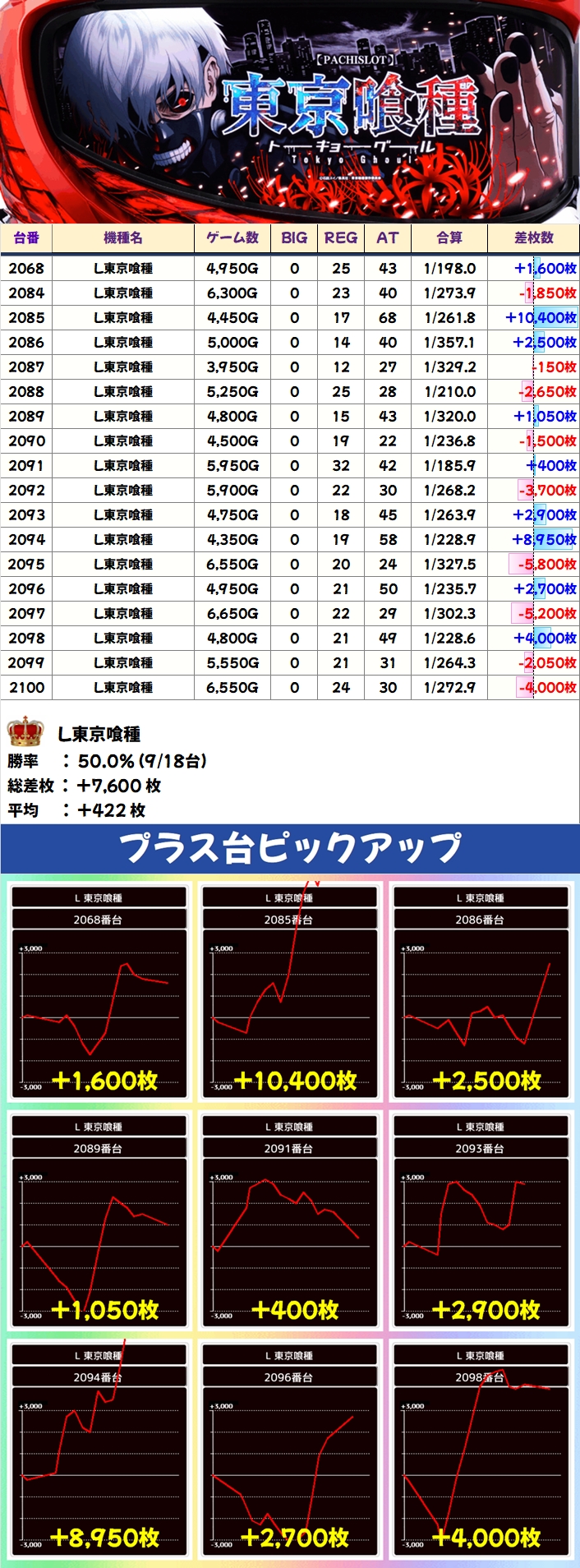 【1/3系濃厚】L東京喰種(9/18台+)→平均+422枚