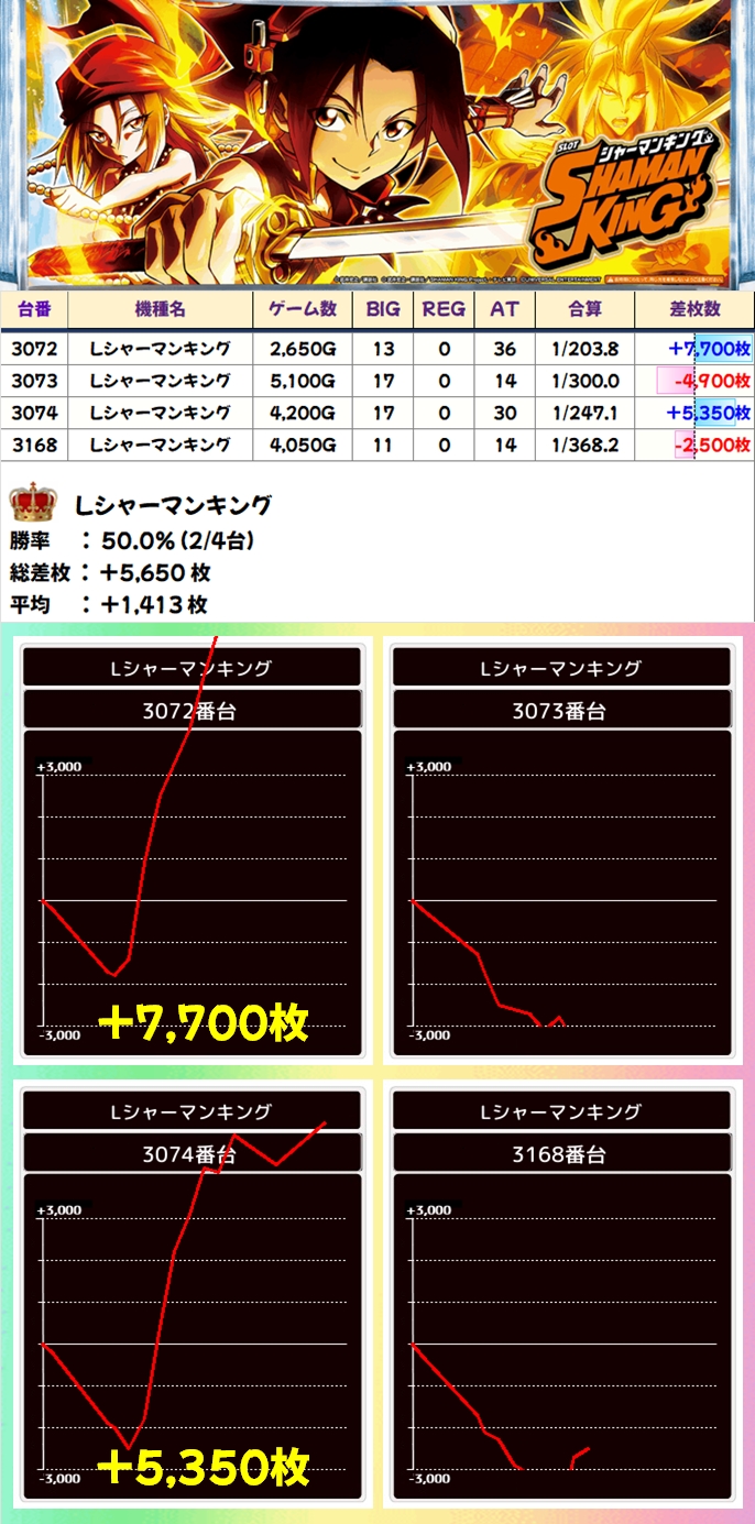【1/2系濃厚】Lシャーマンキング(2/4台+)→平均+1,413枚