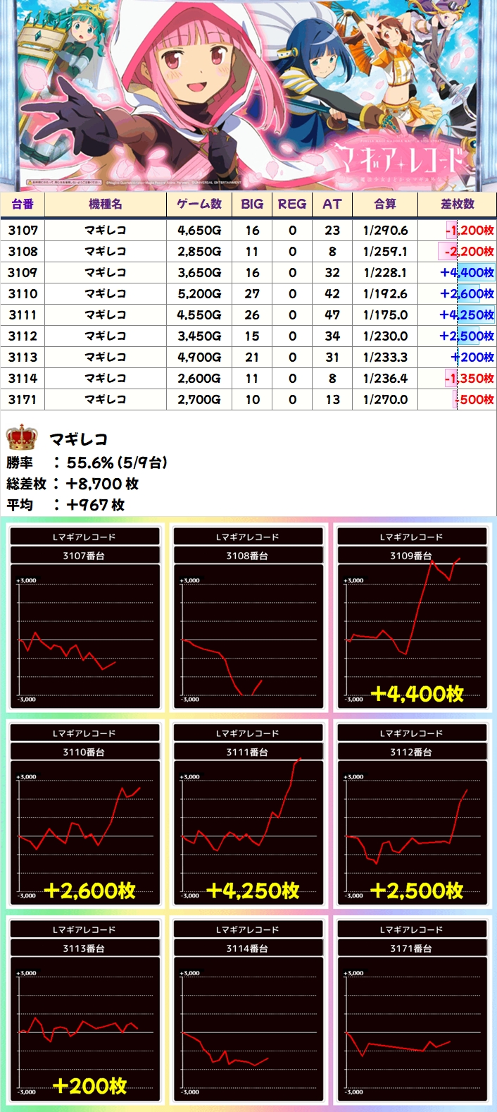 【1/3系濃厚】マギレコ(5/9台+)→平均+967枚