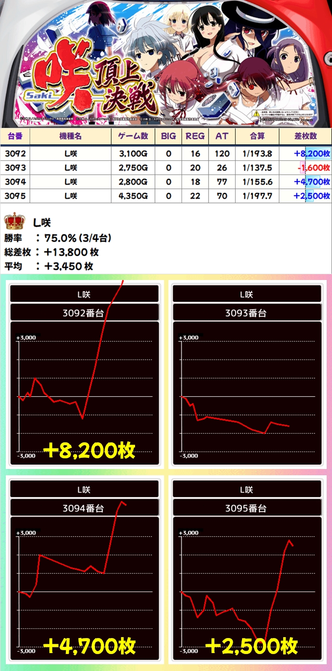 【1/2系濃厚】L咲(3/4台+)→平均+3,450枚