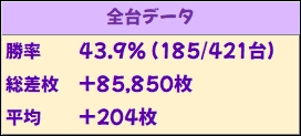 総差枚+8.5万枚、平均+204枚と前回に引き続き大幅プラスを記録!