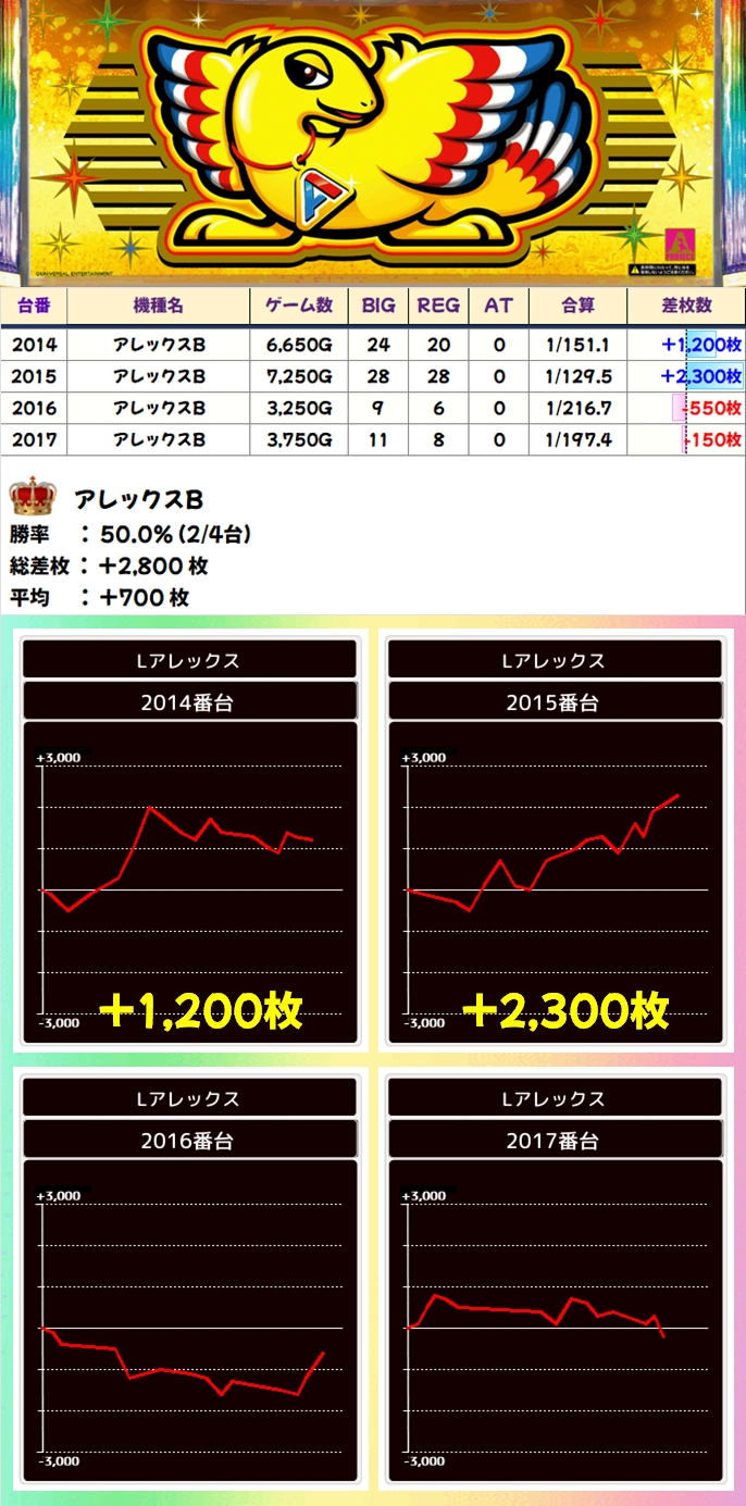【1/2系濃厚機種】アレックスB(2/4台+)→平均+700枚