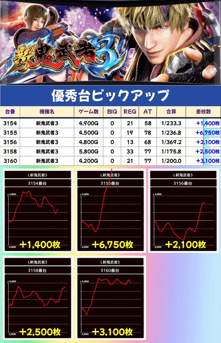 この日は単品での投入も多めに用意されていたようで、メイン機種を中心に優秀台を多数確認!