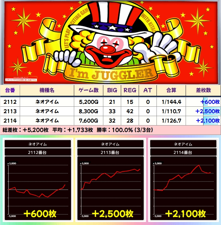 平均+114枚と今月もしっかりプラス差枚を記録!