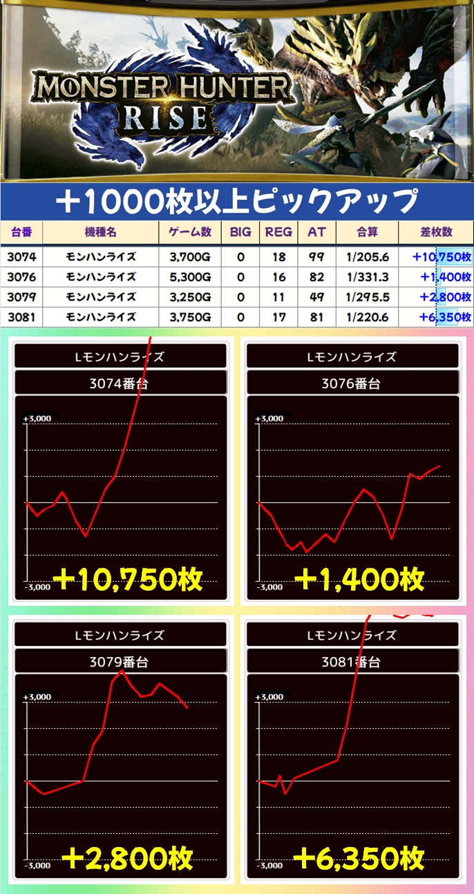 【1/2系濃厚】モンハンライズ(5/12台+)→平均+521枚