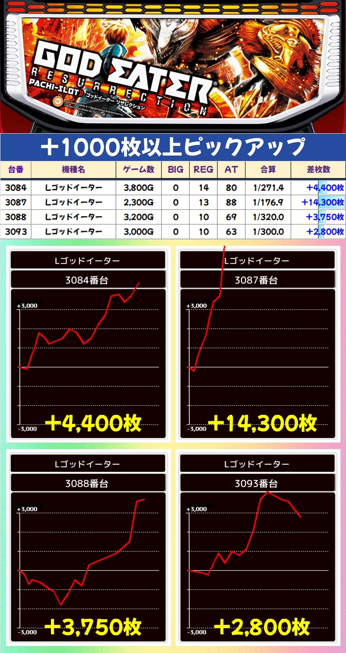 【1/3系濃厚】Lゴッドイーター(4/14台+)→平均+1,021枚