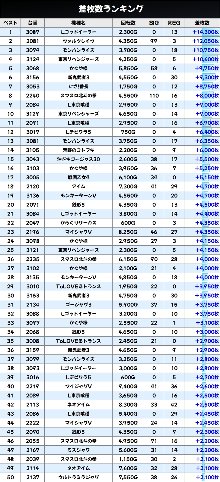 メイン機種を筆頭に大量出玉を確認でき、「東京リベンジャーズ」と「ヴァルヴレイヴ」からは万枚オーバー台が出現していました!