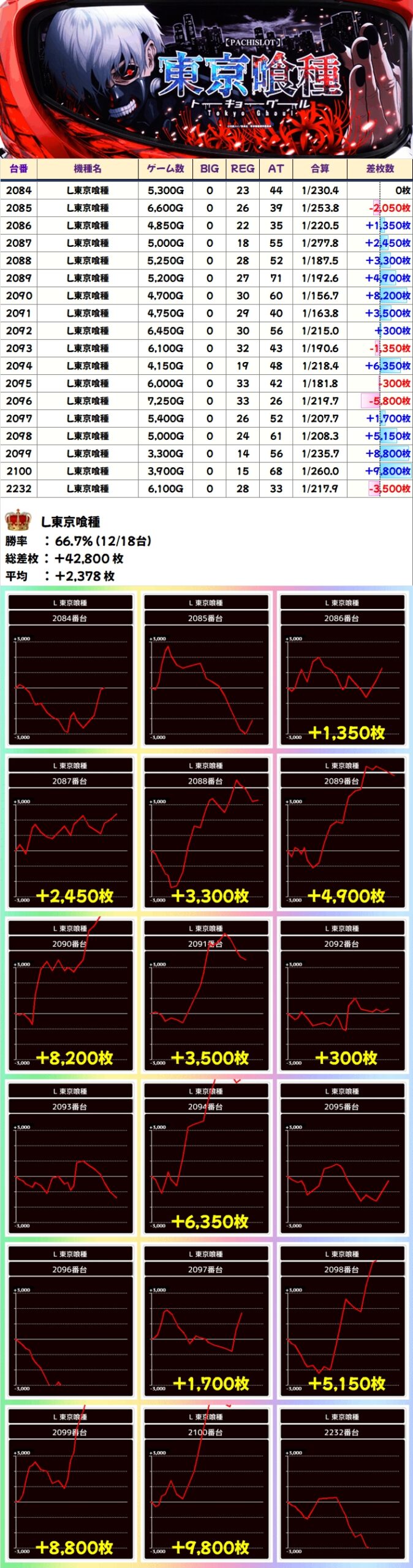 【全台系濃厚】L東京喰種(12/18台+)→平均+2,378枚