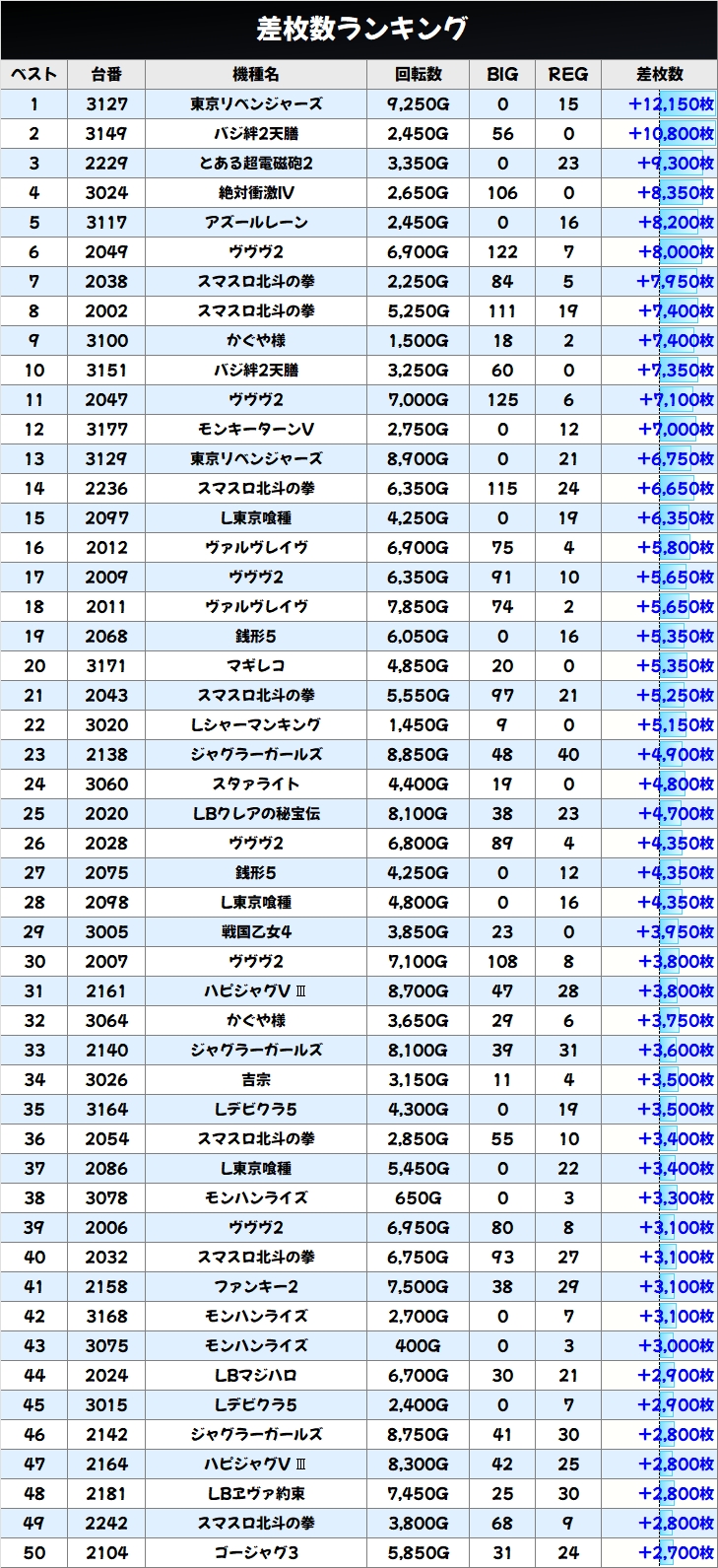 +5000枚以上の大量出玉も多数確認でき、東京リベンジャーズからは万枚オーバー台が出現!