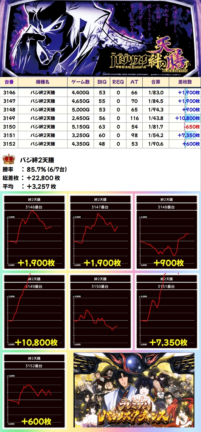 【全台系濃厚】バジ絆2天膳(6/7台+)→平均+3,257枚