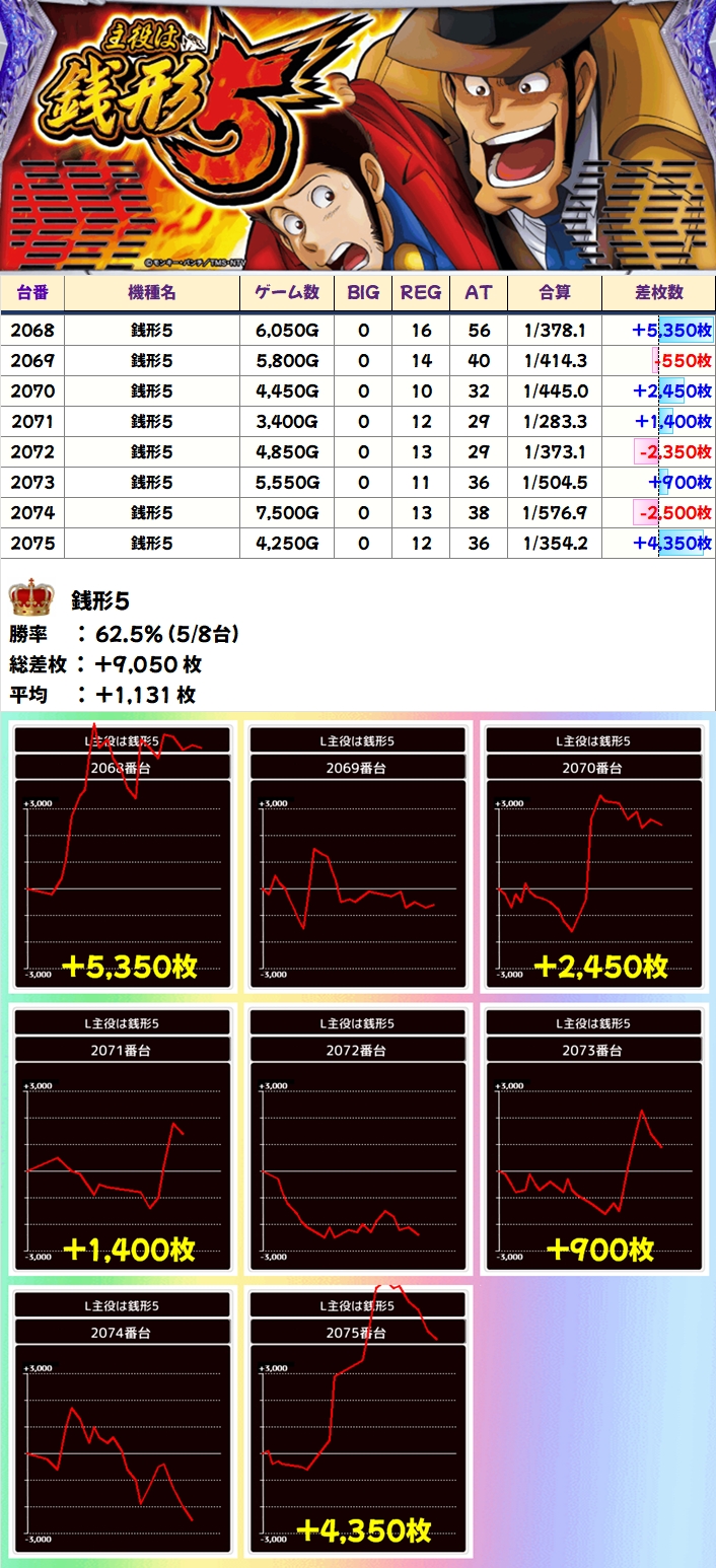 【全台系濃厚】銭形5(5/8台+)→平均+1,131枚