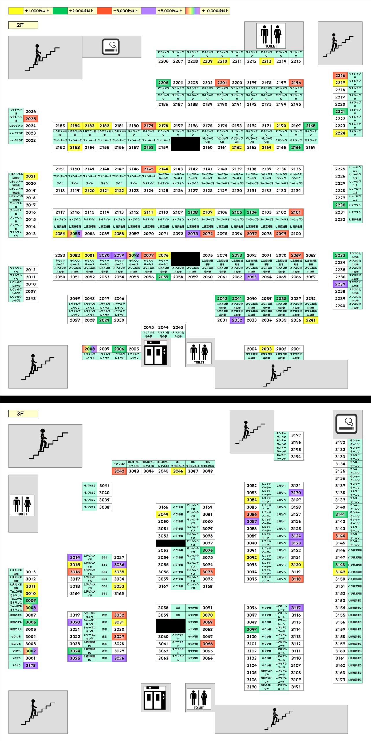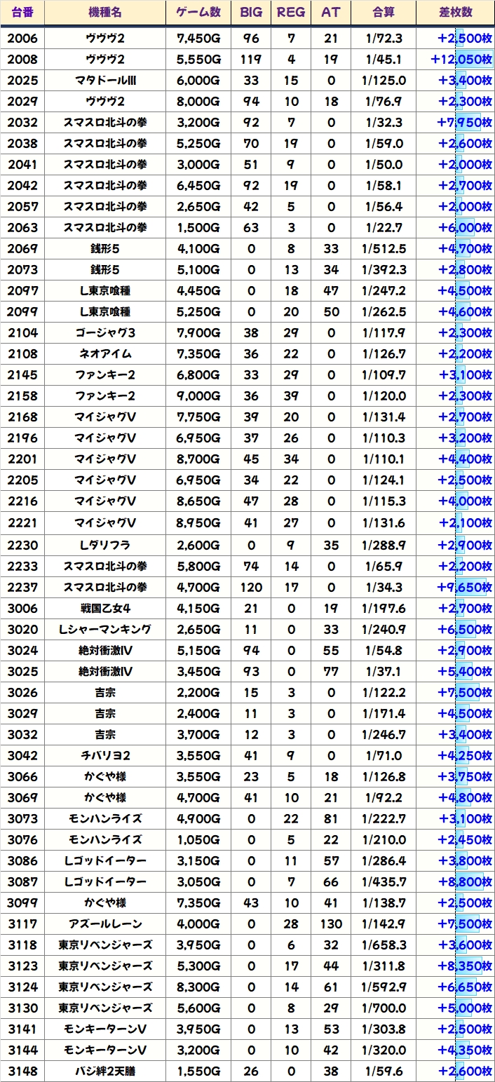 この日は週間・月間オススメポスター機種の仕掛け以外にもお宝台が多数用意されていたようで、2階・3階ともに幅広い機種から優秀台を確認。