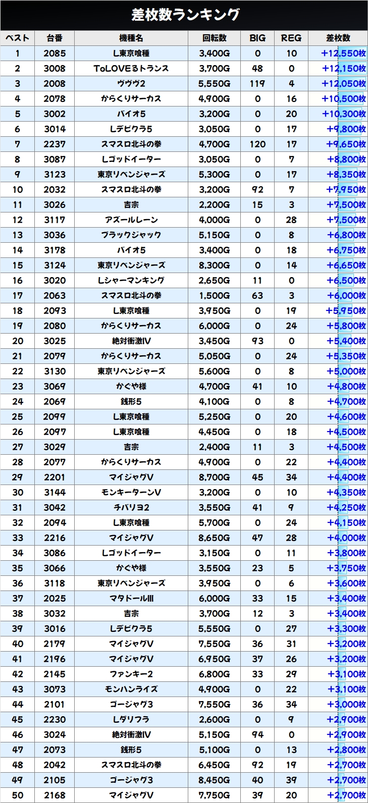 この結果を見ると、次回の超ド級もプラス差枚に期待できそうですね。