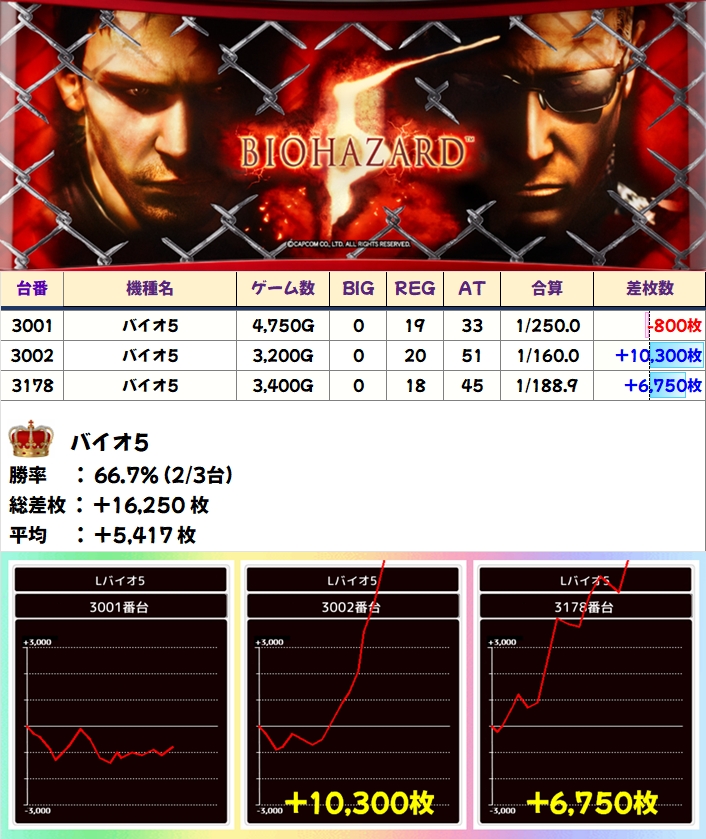 【全台系濃厚】バイオ5(2/3台+)→平均+5,417枚