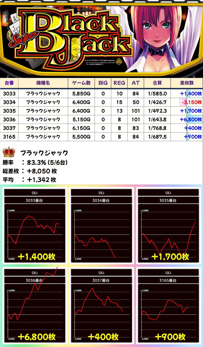 【全台系濃厚】ブラックジャック(5/6台+)→平均+1,342枚