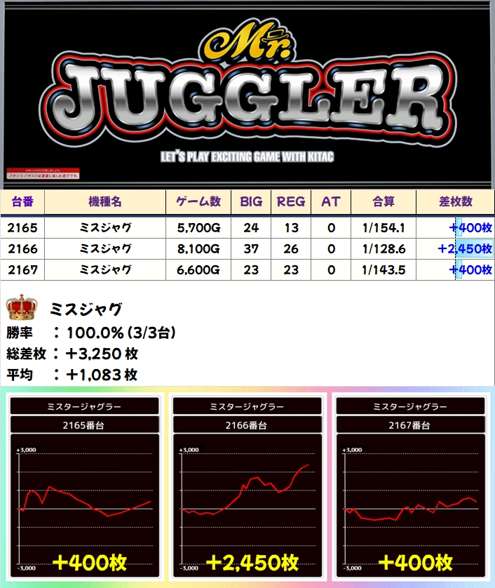 【全台系濃厚】ミスジャグ(3/3台+)→平均+1,083枚