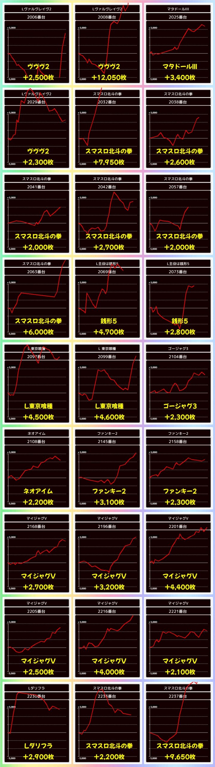 +5000枚以上の大量出玉も多数確認でき、最新台のヴヴヴ2からは万枚オーバー台が出現!