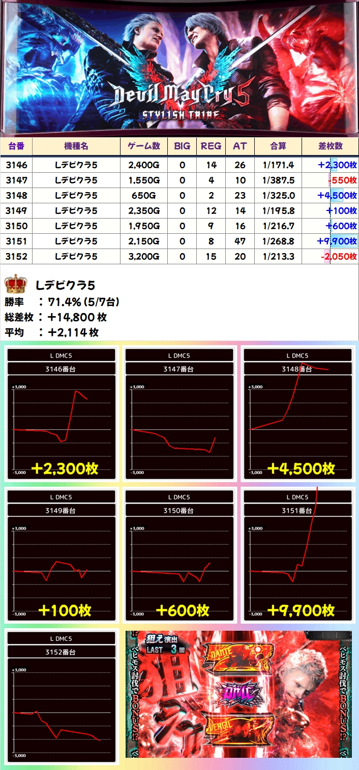 【1/2系濃厚】Lデビクラ5(5/7台+)→平均+2,114枚