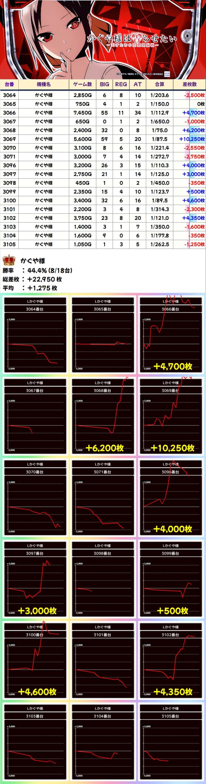 【1/2系濃厚】かぐや様(8/18台+)→平均+1,275枚