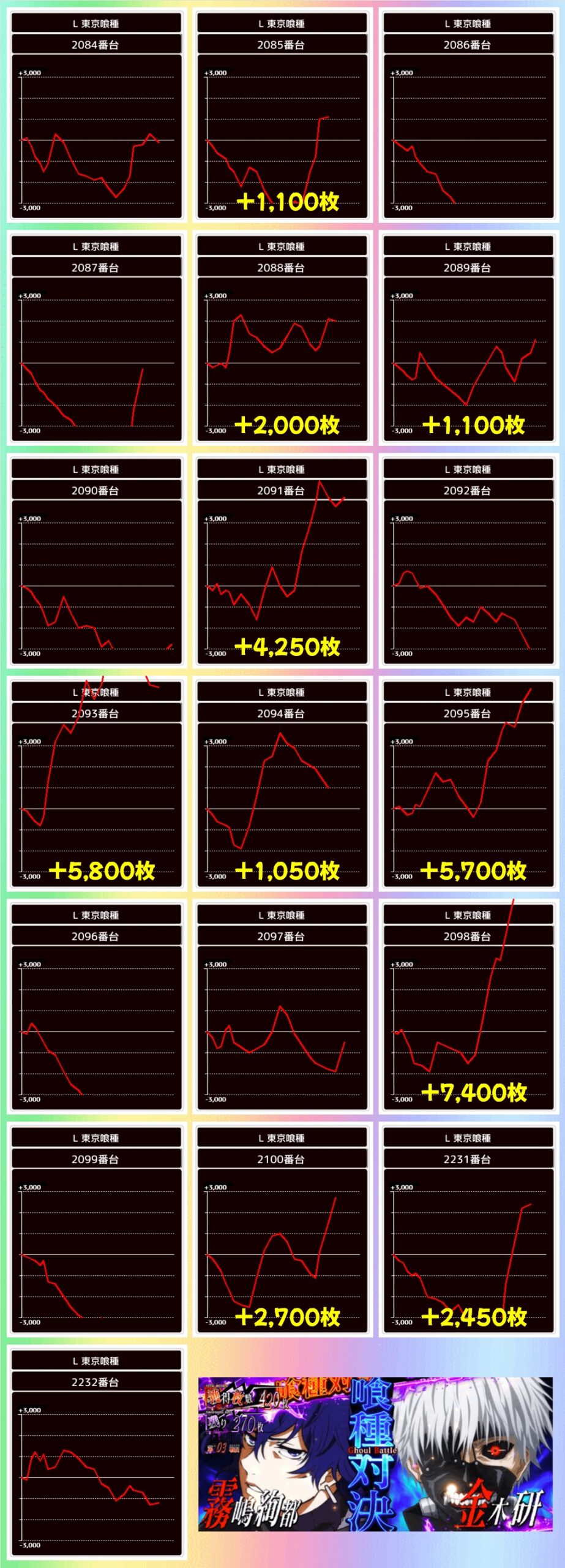 東京喰種は毎日のように2台並びを確認できているため、立ち回る際は塊での投入を意識するようにしましょう!