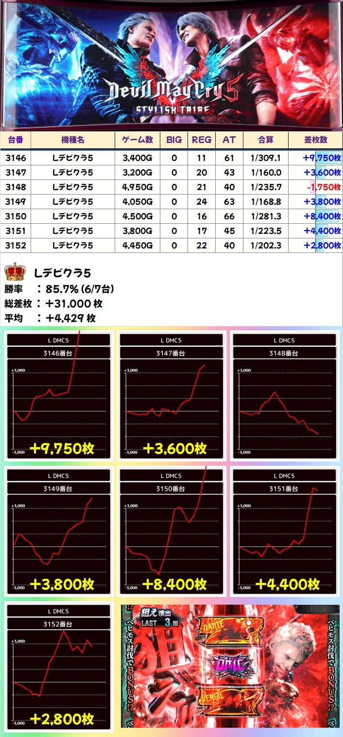 【全台系濃厚】Lデビクラ5(6/7台+)→平均+4,429枚