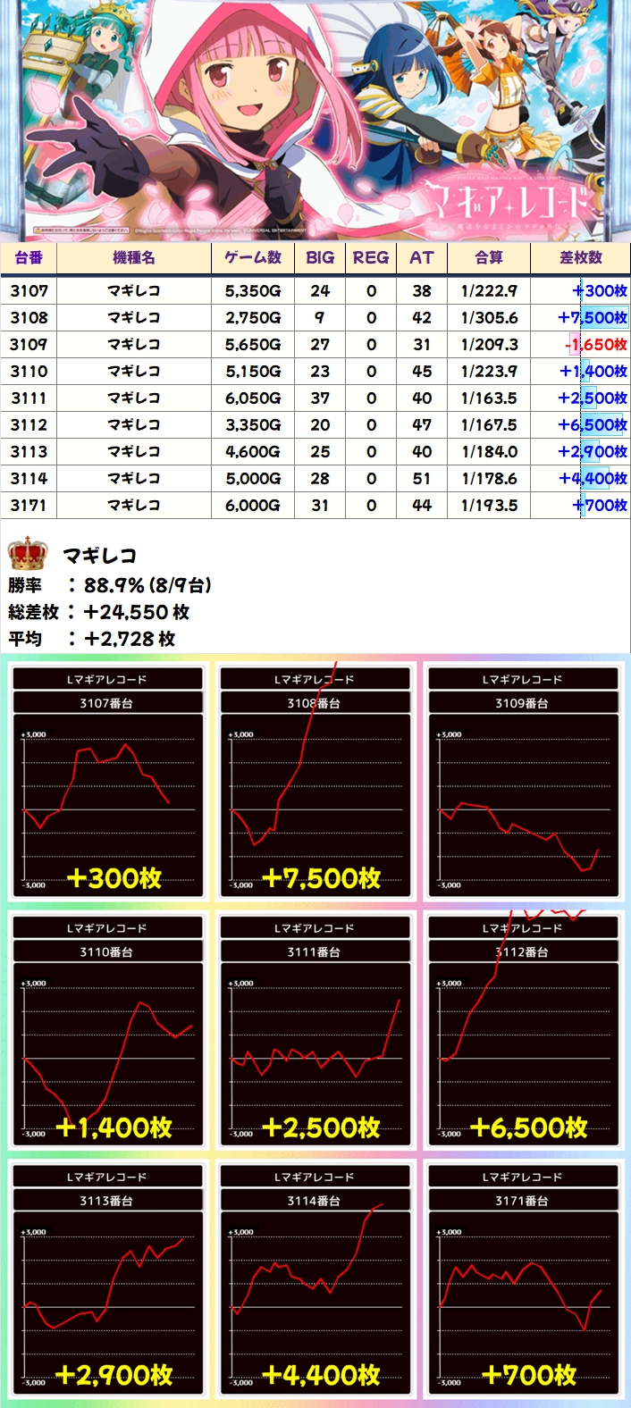 【全台系濃厚】マギレコ(8/9台+)→平均+2,728枚