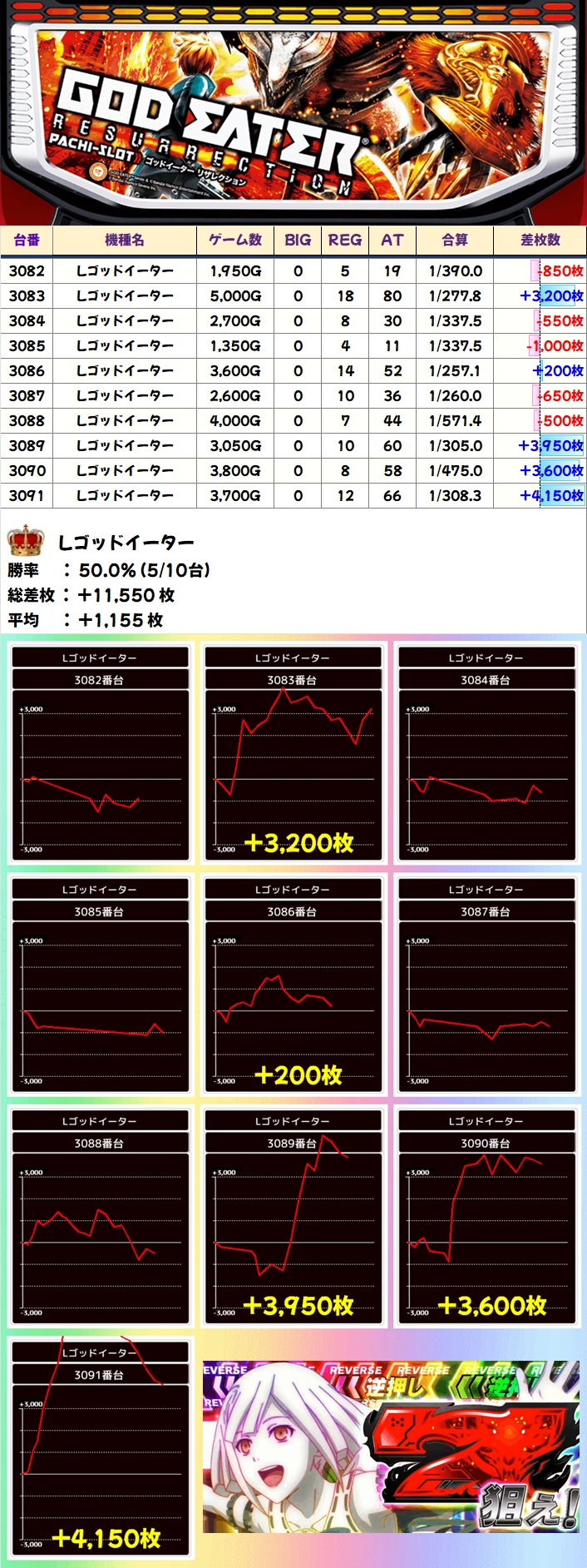 【全台系濃厚】Lゴッドイーター(5/10台+)→平均+1,155枚