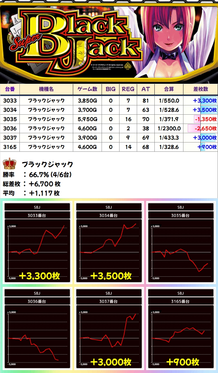 【全台系濃厚】ブラックジャック(4/6台+)→平均+1,117枚