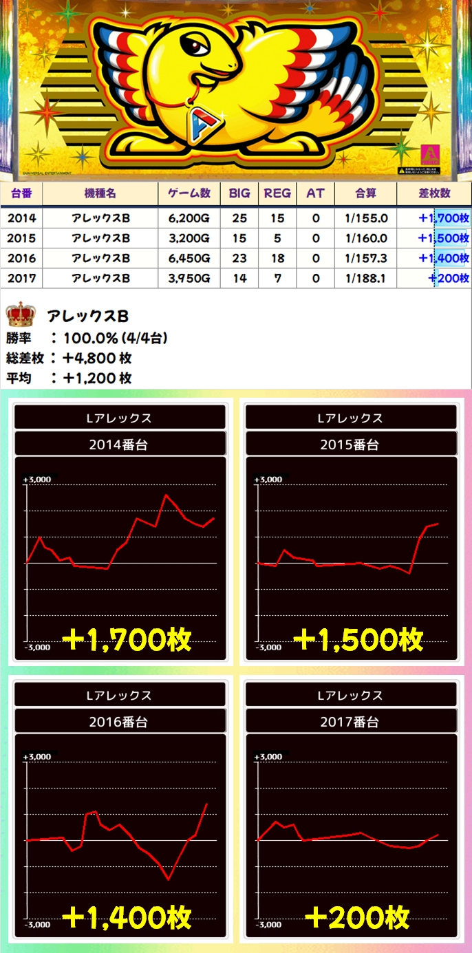 【1/2系濃厚】アレックスB(4/4台+)→平均+1,200枚