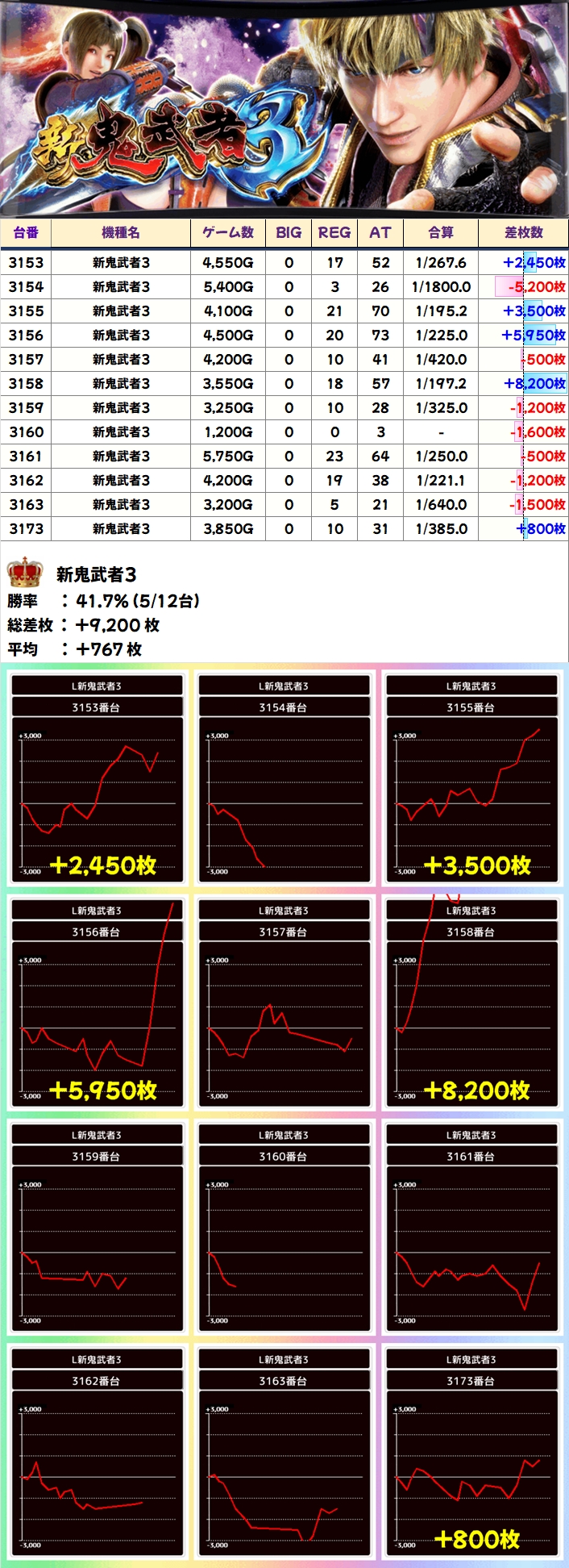 【1/2系濃厚】新鬼武者3(5/12台+)→平均+767枚