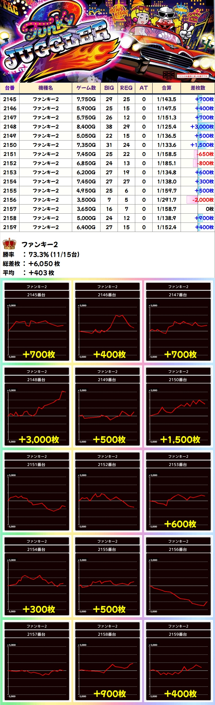 【1/2系濃厚】ファンキー2(11/15台+)→平均+403枚