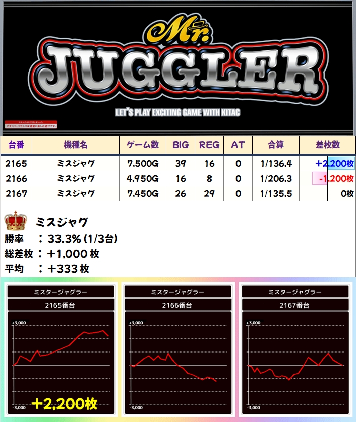 【1/2系濃厚】ミスジャグ(1/3台+)→平均+333枚