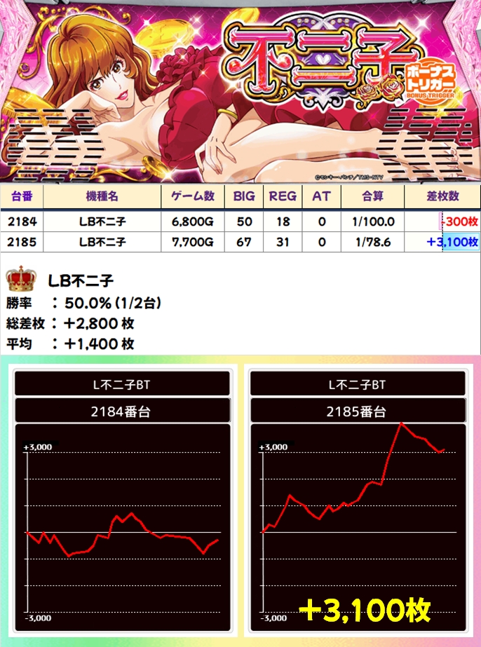 【1/2系濃厚】LB不二子(1/2台+)→平均+1,400枚