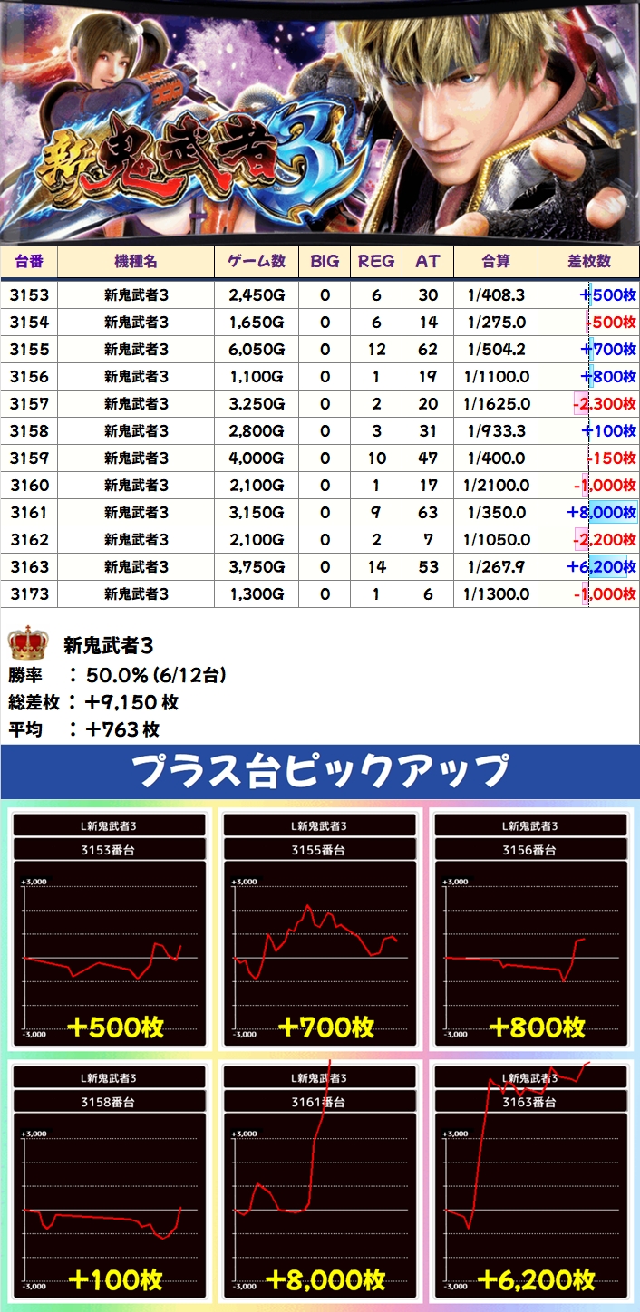 【1/3系濃厚】新鬼武者3(6/12台+)→平均+763枚