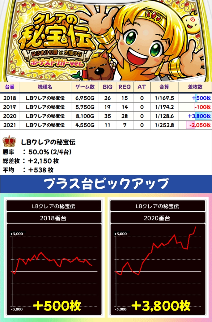 【1/3系濃厚】LBクレアの秘宝伝(2/4台+)→平均+538枚