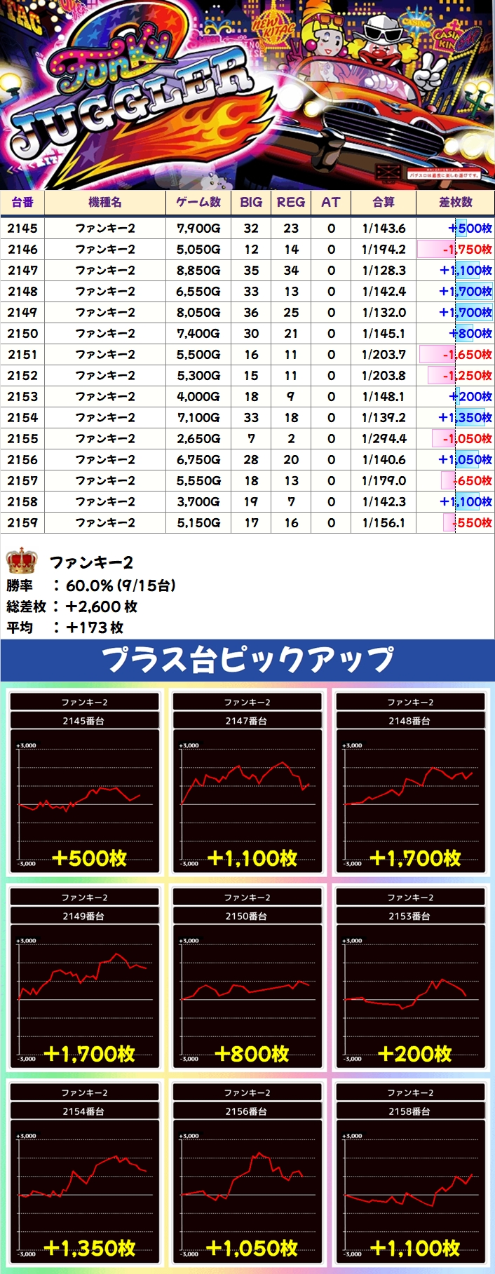 【1/3系濃厚】ファンキー2(9/15台+)→平均+173枚