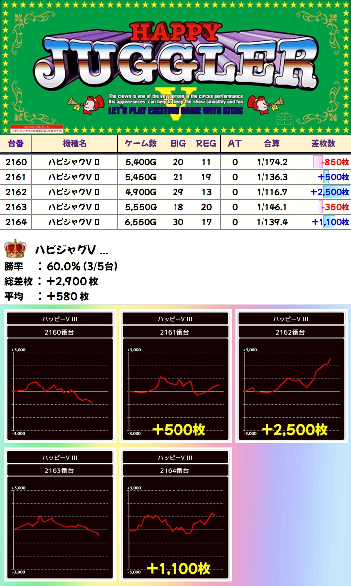 【1/2系濃厚】ハピジャグV Ⅲ(3/5台+)→平均+580枚