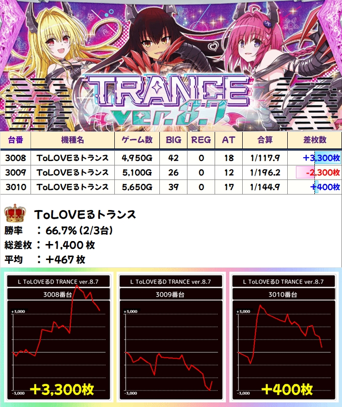 【1/2系濃厚】ToLOVEるトランス(2/3台+)→平均+467枚