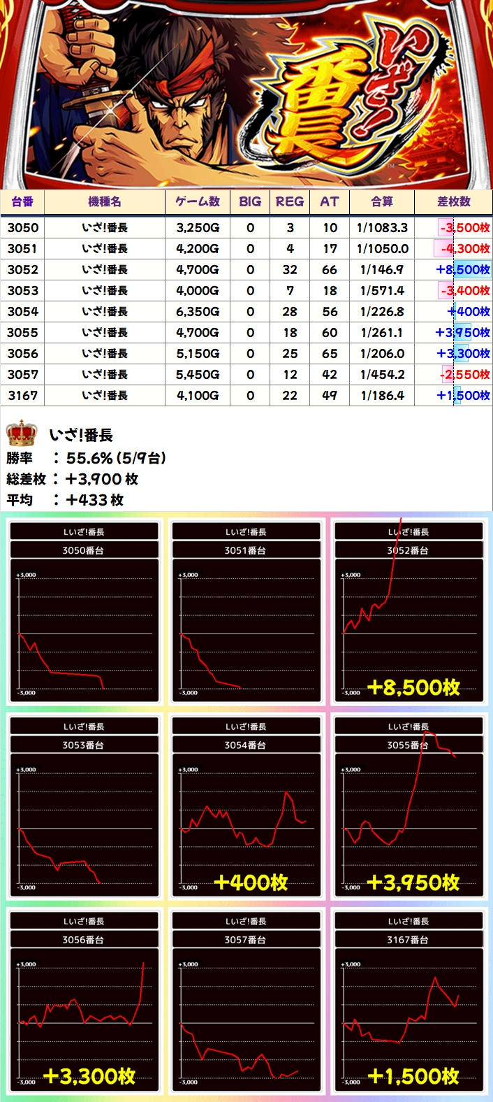 【1/2系濃厚】いざ!番長(5/9台+)→平均+433枚
