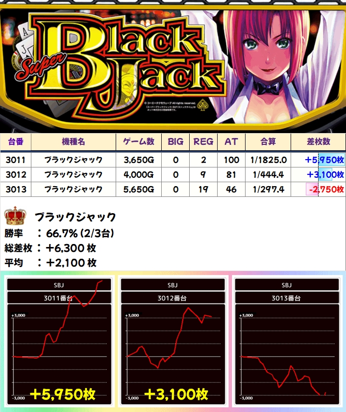 【全台系濃厚】ブラックジャック(2/3台+)→平均+2,100枚