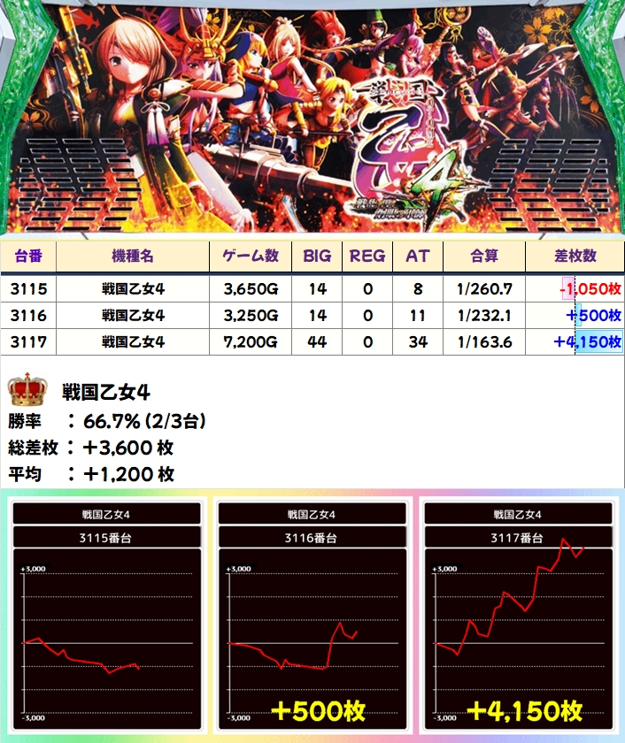 【全台系濃厚】戦国乙女4(2/3台+)→平均+1,200枚