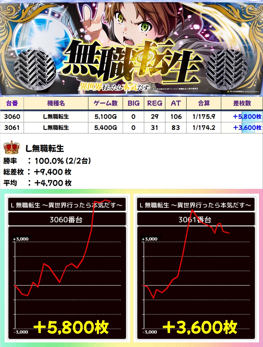 【全台系濃厚】L無職転生(2/2台+)→平均+4,700枚